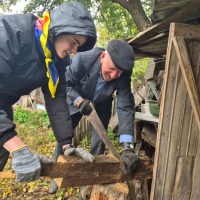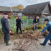 Волонтеры помогали в уборке придомовых территорий, сборе листвы, наведении порядка во дворах и хозяйственных постройках.